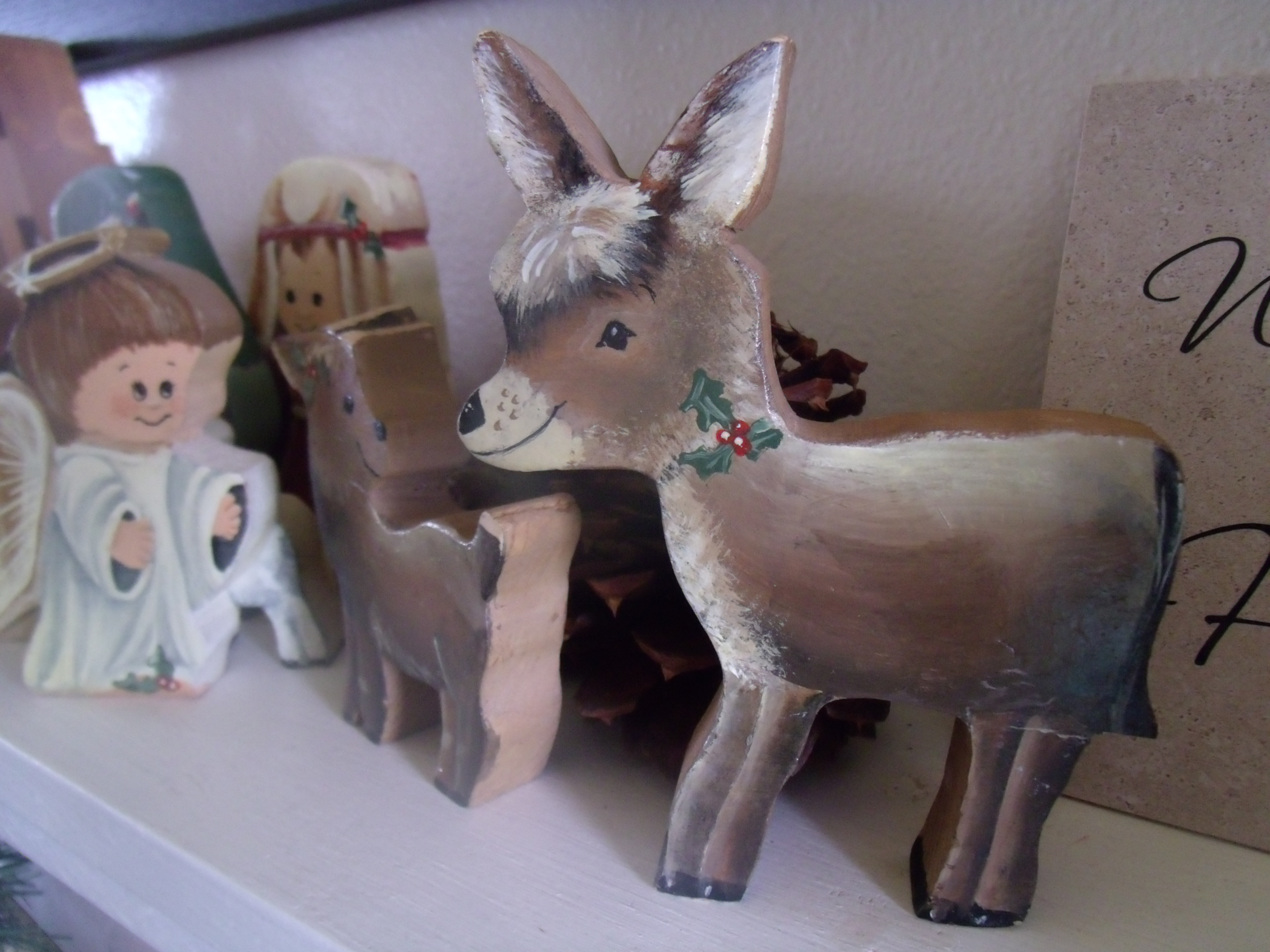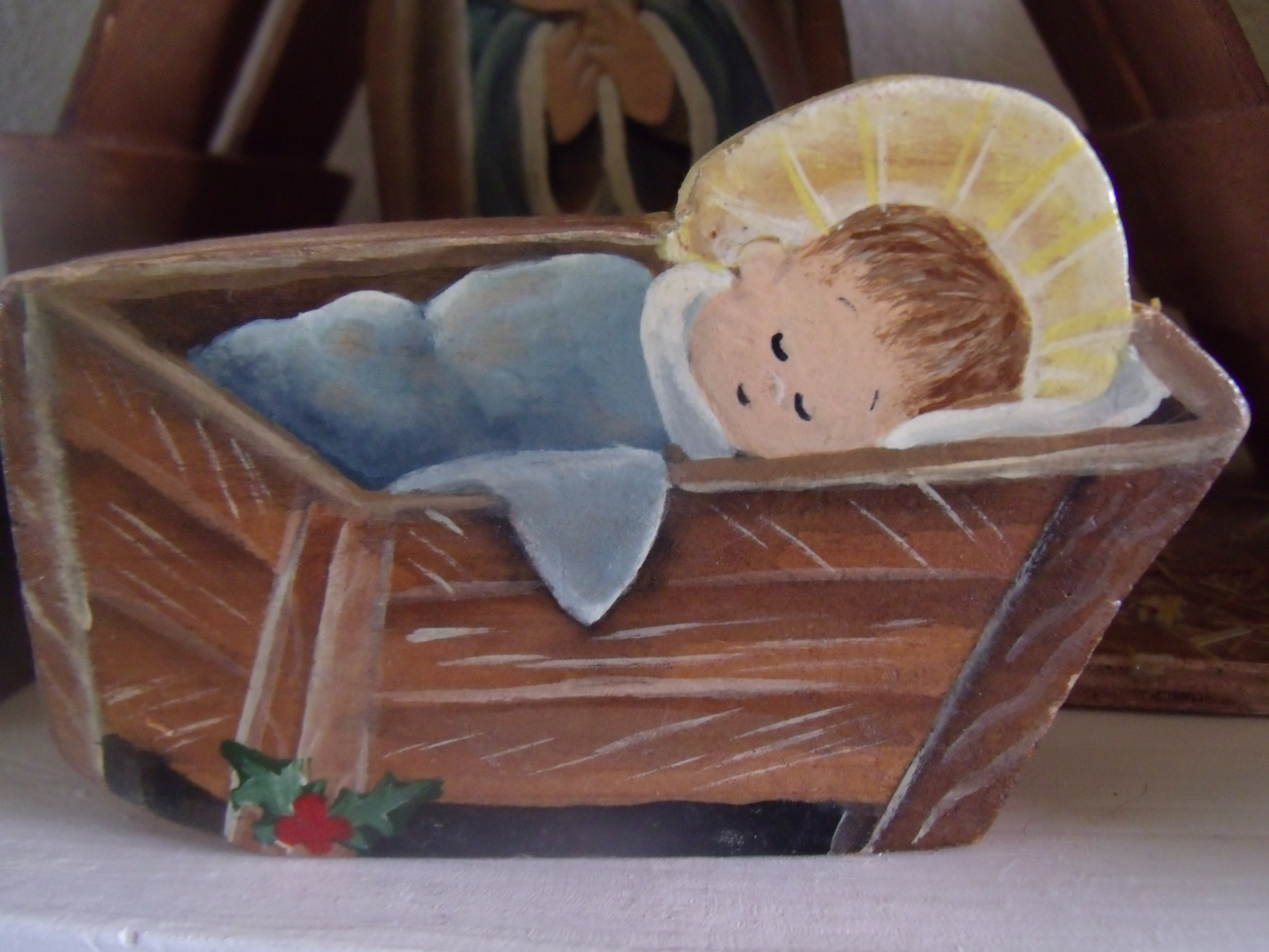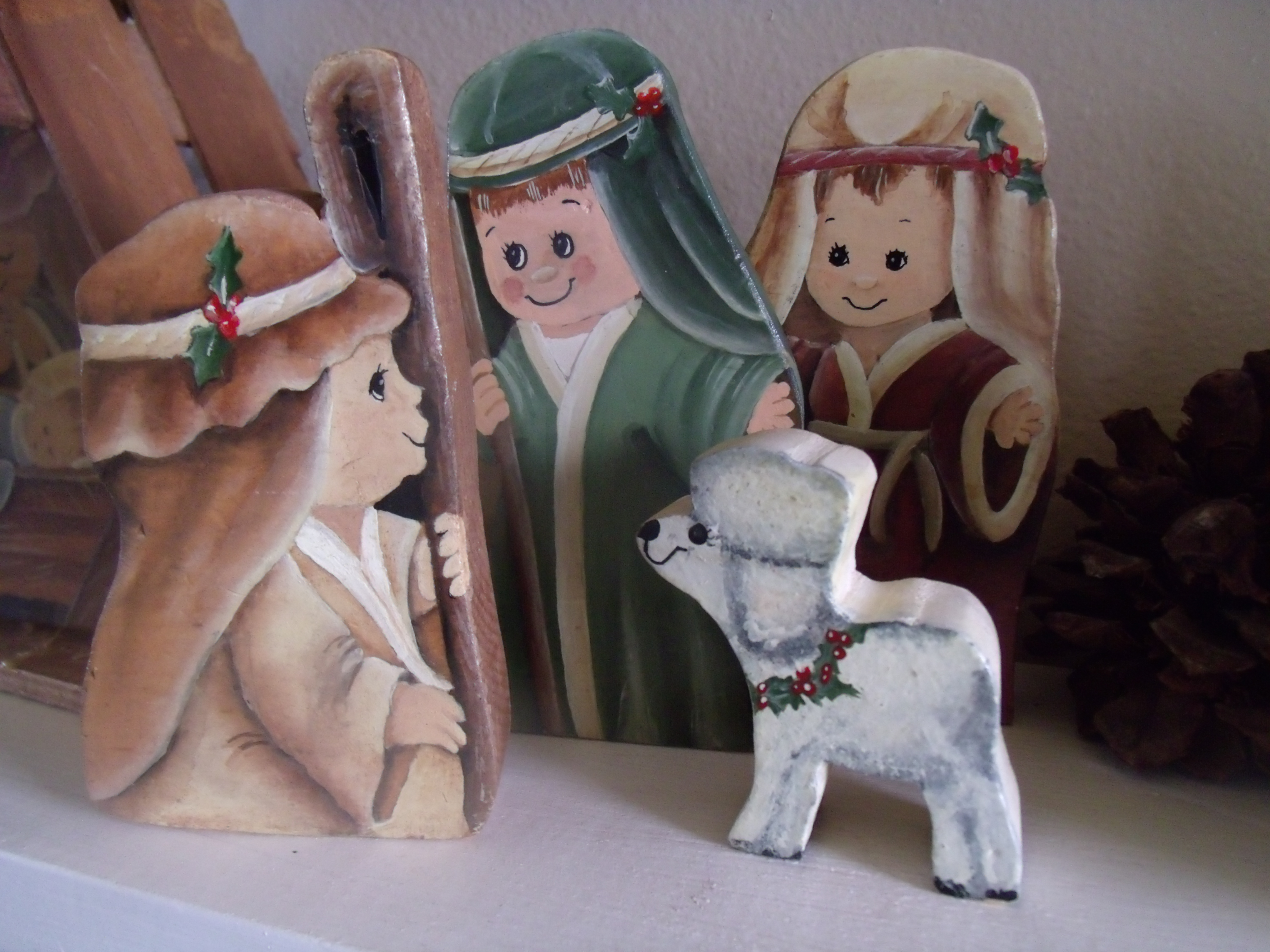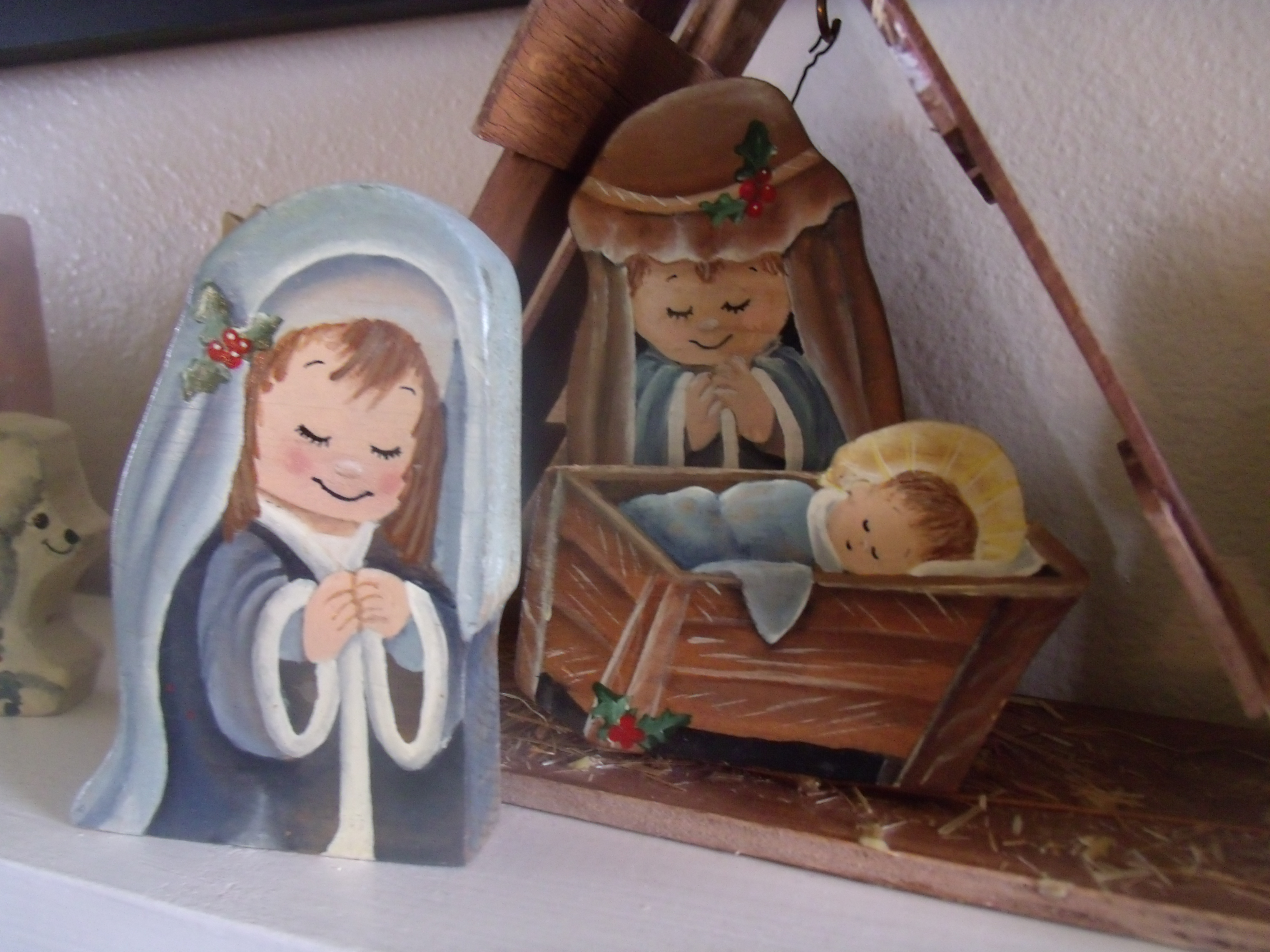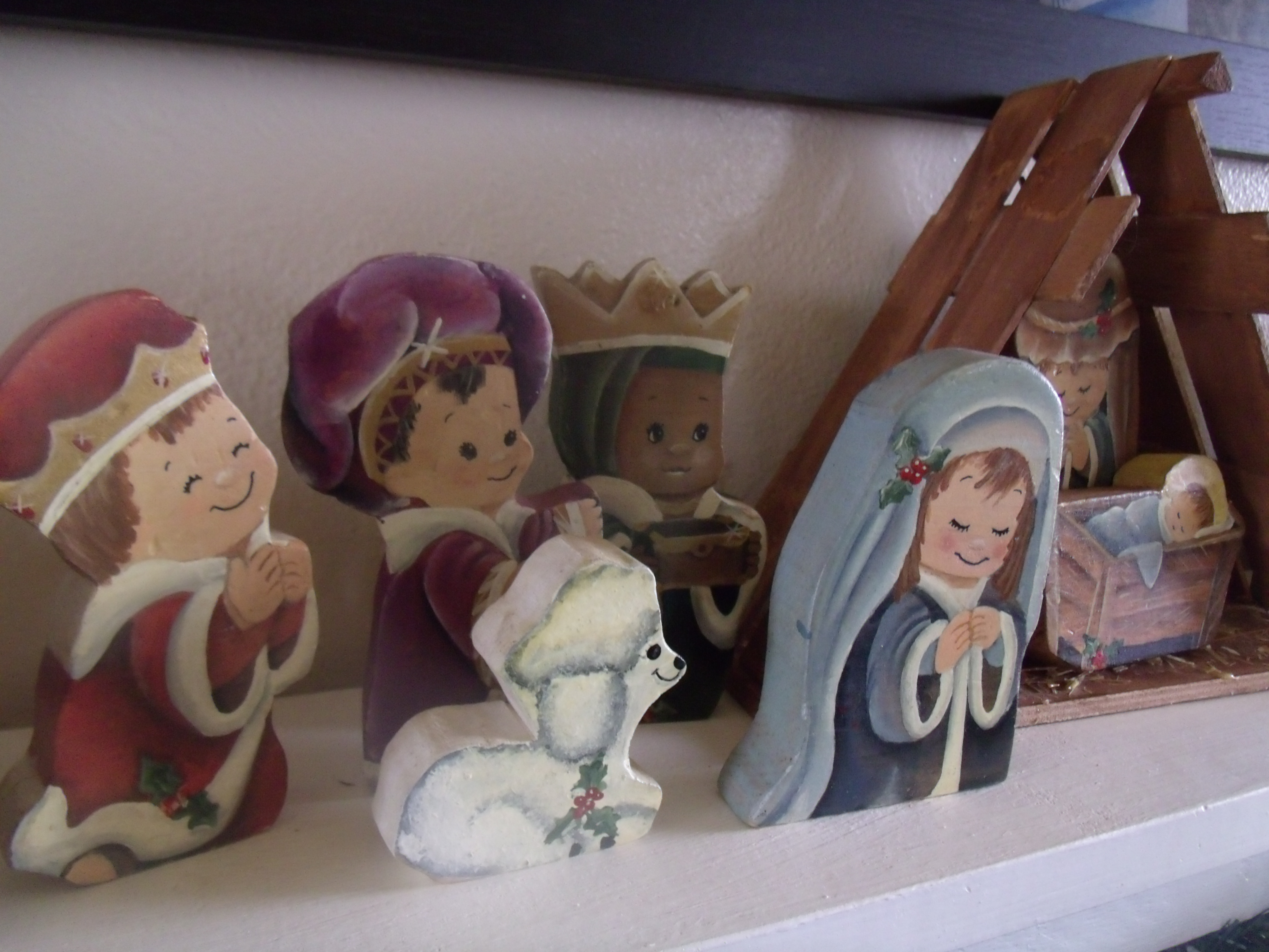 So back to my little Nativity scene. Years ago when I painted this set, I intended to make one for each of my children when they had kids. But I have to make a completely different one, now, with a cave, a stone trough, and a dozen wise men who somehow show up a couple years later at a house.