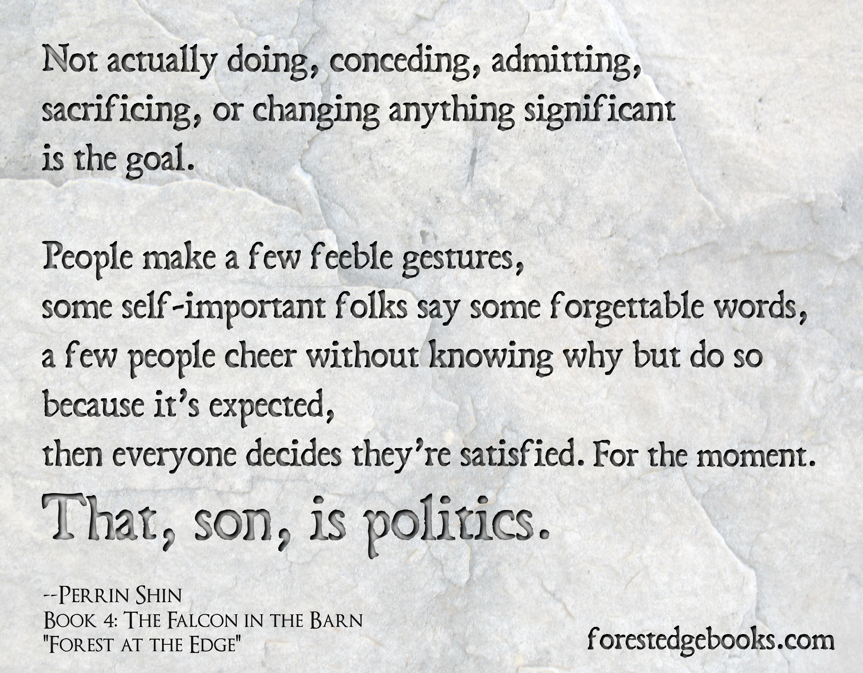 I have to confess that with the election season already upon us, and with more than a full year to go, I’m already sharing Perrin’s skepticism about politics: