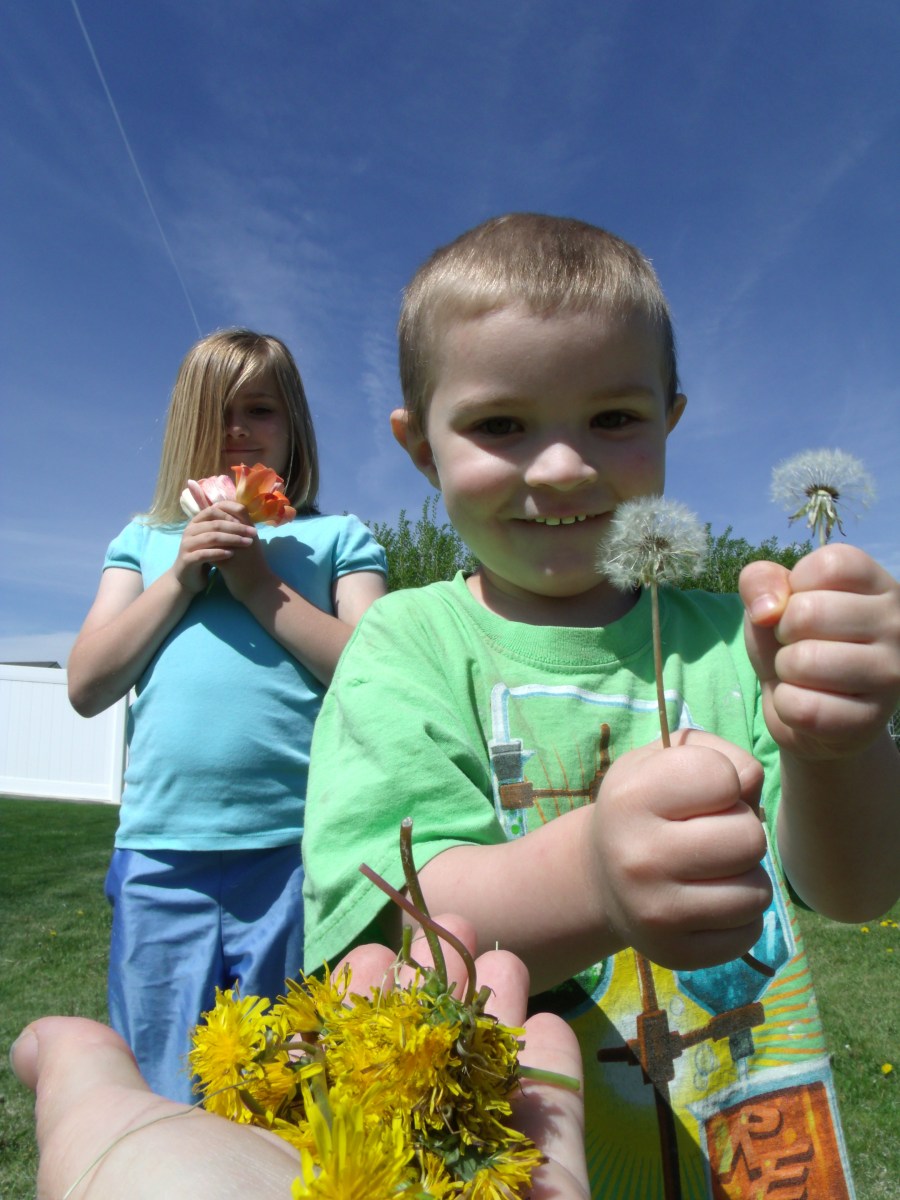 GEDSC DIGITAL CAMERA Published May 4, 2016 at 3240 × 4320 in How to cancel your Mother’s Day Guilt Trip with “Moments of Perfection” ← Previous Next → Yvonne’s youngest granddaughter and grandson, helping to ensure more pretty yellow flowers grow in our grass.